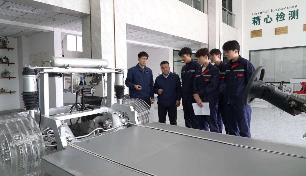 在产教深层次地融合的实践中,学校将课堂设在生产线上,把科研做在车间里,着力破解行业“卡脖子”技术难题。在山东美晨工业集团研发中心,学院科研团队与企业技术骨干深层次地融合,联合攻关的ECAS电子控制8气囊空气悬架系统,成功破解了控制延迟、能耗偏高等行业痛点,降低空气消耗25%,新增升降辅助等多项智能化功能,填补了国内相关领域技术空白。